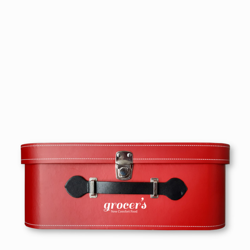 Sem dúvida, esta mala para cabaz é uma elegante mala de cartão vermelho, interior forrado. Ainda mais, com bons acabamentos.