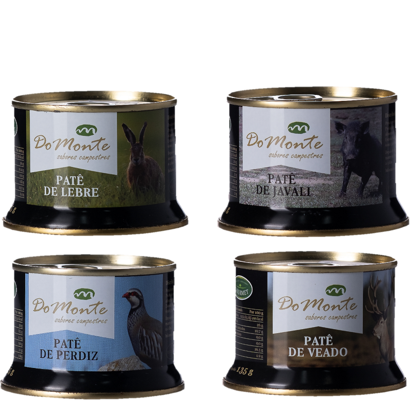 Os patés de caça DoMonte são um bom petisco para entradas, acompanhados de um bom vinho e tostas.